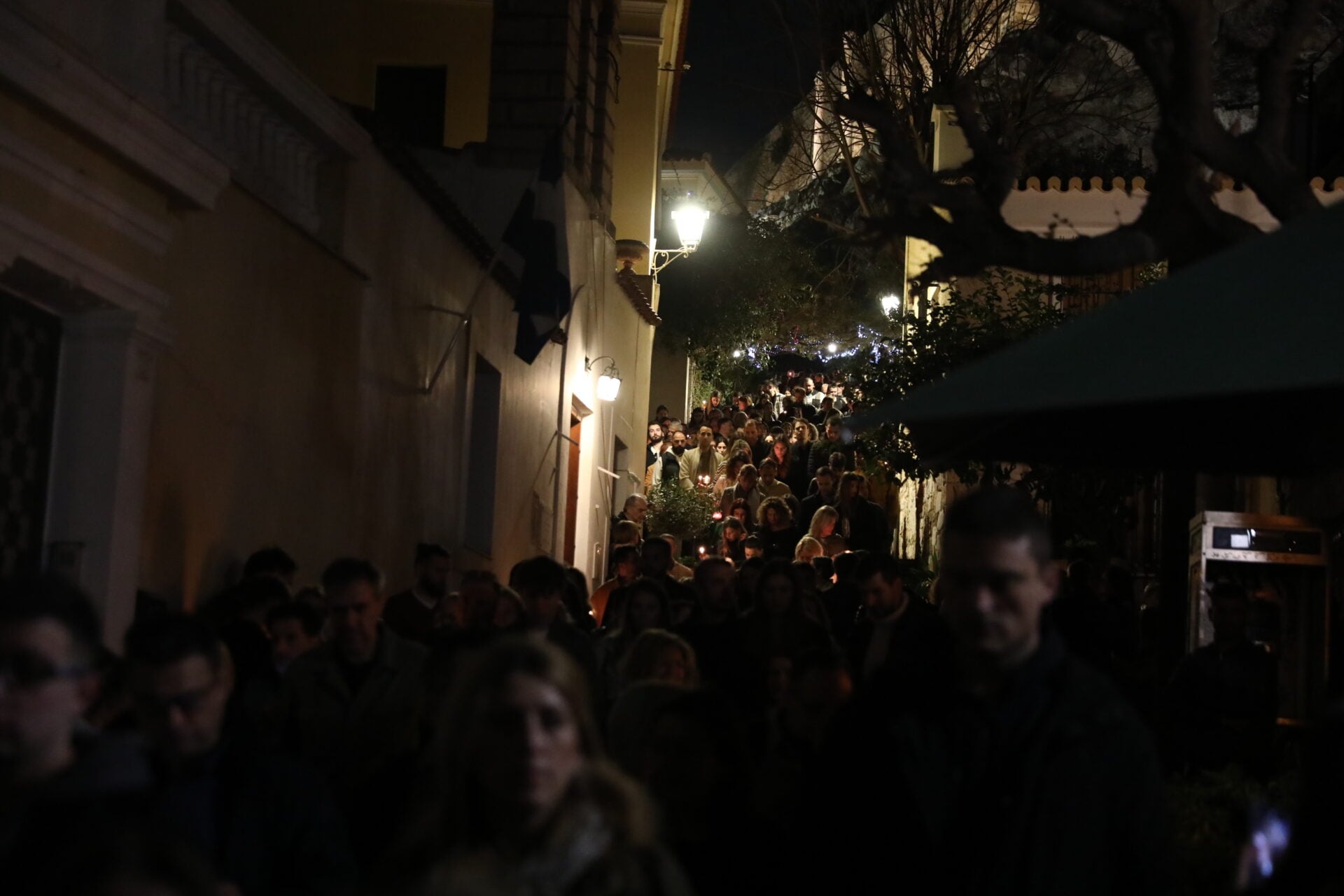 Κάτοικοι και επισκέπτες κατέκλυσαν κάθε γωνιά της Πλάκας, συμμετέχοντας στον Επιτάφιο Θρήνο μέσα σε κλίμα βαθιάς κατάνυξης.