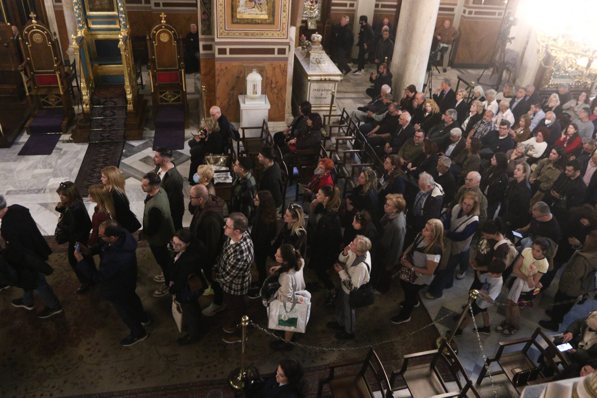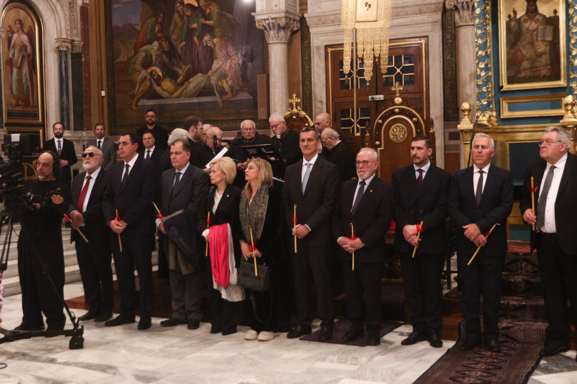 Στην Ακολουθία χοροστάτησε ο Αρχιεπίσκοπος Αθηνών και πάσης Ελλάδος κ. Ιερώνυμος, πλαισιωμένος από τους Επισκόπους Τανάγρας Απόστολο και Επιδαύρου Νικόδημο. Το «παρών» έδωσαν εκπρόσωποι της πολιτικής ηγεσίας, των Ενόπλων Δυνάμεων και των Σωμάτων Ασφαλείας, καθώς και ακαδημαϊκοί, τιμώντας την ιερότερη ημέρα της Χριστιανοσύνης ανάμεσα σε πλήθος κόσμου που είχε κατακλύσει τον ναό και τους γύρω δρόμους.