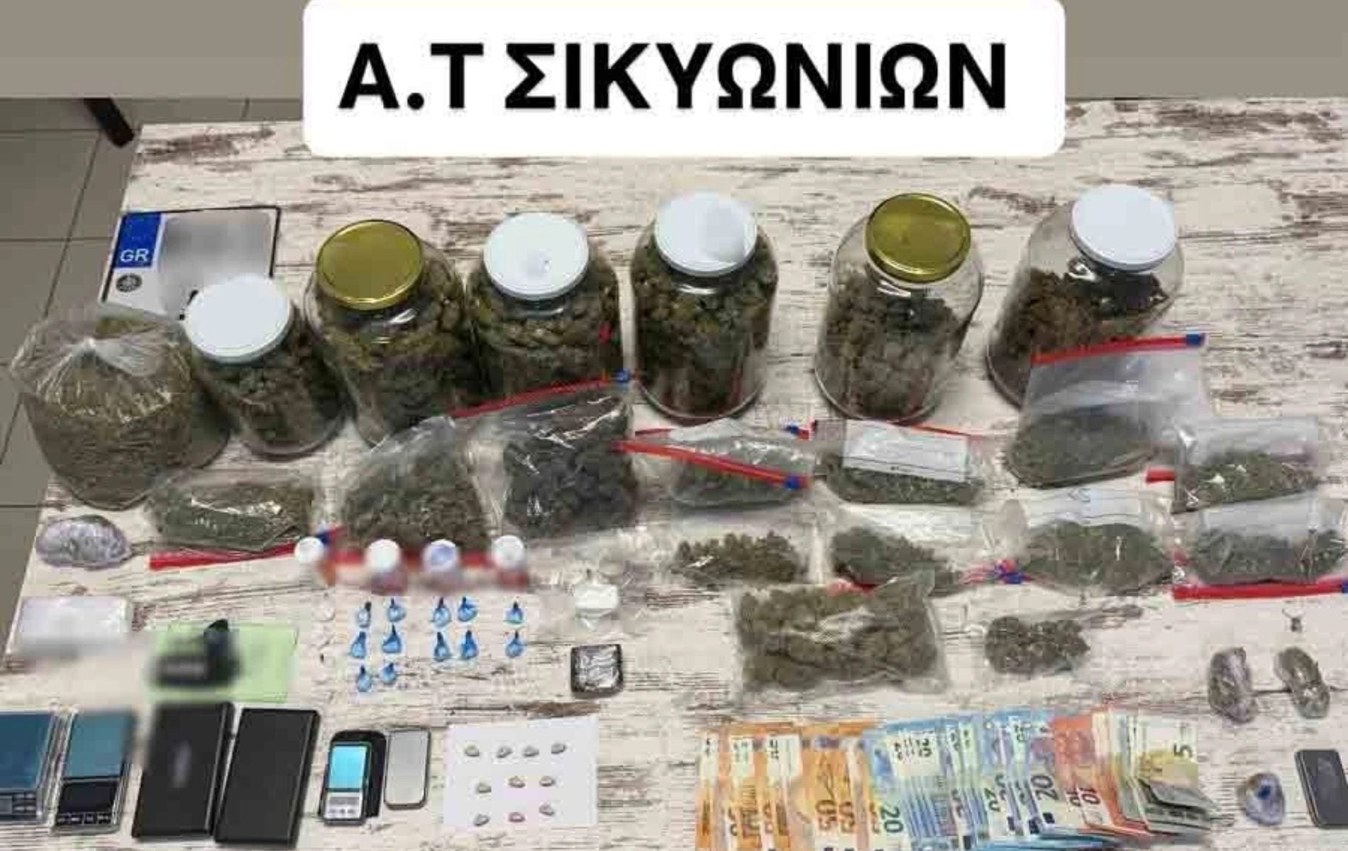 Στους χώρους που χρησιμοποιούσαν οι δράστες εντοπίστηκε ένα πλήρως εξοπλισμένο εργαστήριο εσωτερικής καλλιέργειας κάνναβης, το οποίο διέθετε ανεμιστήρες, φωτιστικά υψηλής ισχύος, λιπάσματα και μετρητές ακριβείας. Συνολικά κατασχέθηκαν περισσότερα από 2,8 κιλά ακατέργαστης κάνναβης, ποσότητες κοκαΐνης και επεξεργασμένης κάνναβης, καθώς και παραισθησιογόνα δισκία MDMA (ecstasy).