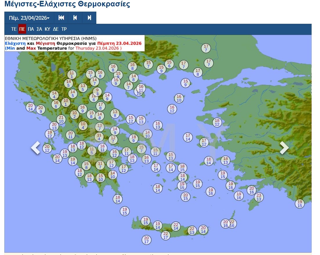 Θερμοκρασία: Από 09 έως 18 βαθμούς Κελσίου. Στα βόρεια 3 με 4 βαθμούς χαμηλότερη.