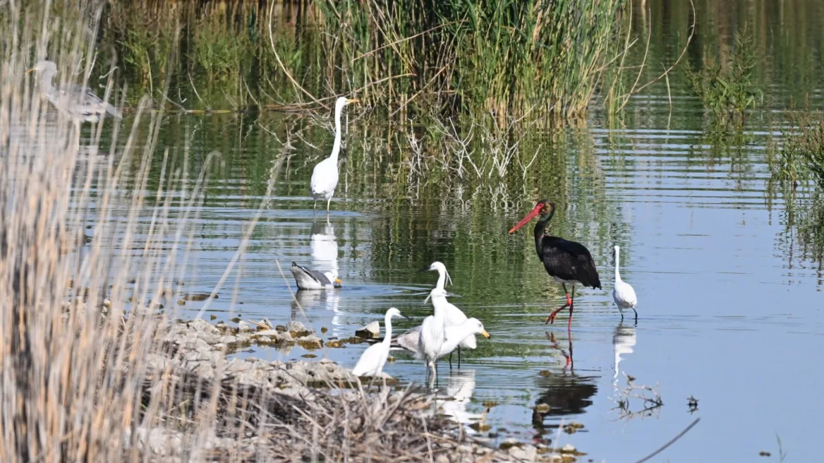 Ένας σπάνιος μαυροπελαργός έκανε την εμφάνισή του στα νερά της Κάρλας.
