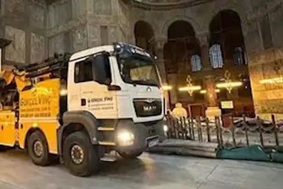 Να μην ανησυχούμε, λέει ο υπουργός Πολιτισμού της Τουρκίας, επειδή, πριν ξαμολήσουν τις θηριώδεις νταλίκες και τα τεράστια φορτία μέσα στην καρδιά της Αγίας Σοφίας, έκαναν στατικές μελέτες εδάφους, υπολογίσανε πόσους τόνους μπορεί να σηκώσει το πάτωμα και στρώσανε από πάνω προστατευτικό υλικό.