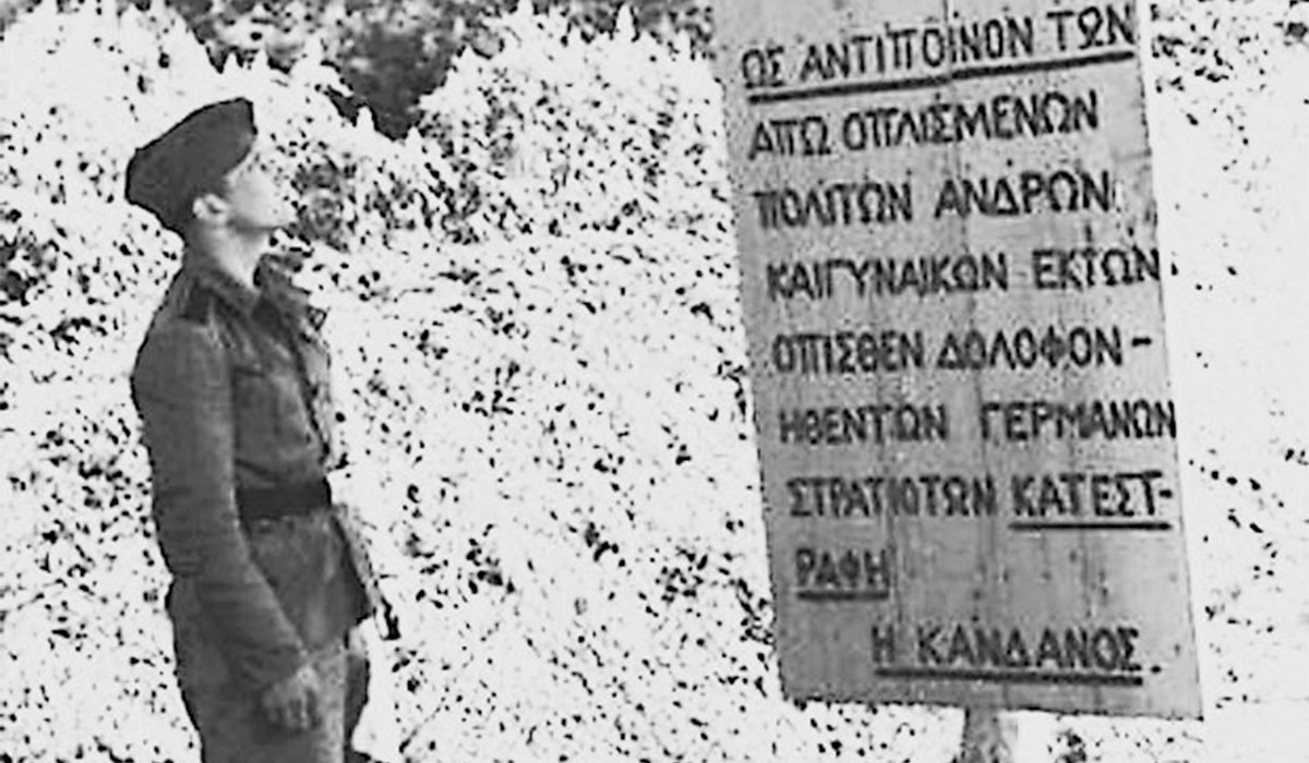 ➤ Διά την κτηνώδη δολοφονίαν Γερμανών αλεξιπτωτιστών, αλπινιστών και του Μηχανικού από άνδρας, γυναίκας, παιδιά και παπάδες μαζί, και διότι τόλμησαν να αντισταθούν κατά του Μεγάλου Ράιχ, κατεστράφη την 3η/06/1941 η Κάνδανος εκ θεμελίων διά να μη επανοικοδομηθή πλέον ποτέ».