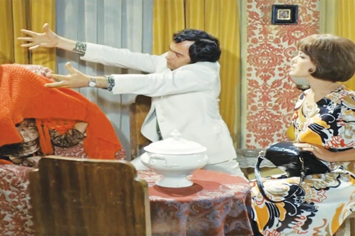 ● Η Ρένα έκανε το μέντιουμ και, για να δει τα μελλούμενα, έπρεπε να της καθαρίσουν το τοπίο, να διαλύσουν τα σύννεφα με χιλιάρικα που θα κουνούσαν μπροστά από το πρόσωπό της και ύστερα θα της τα έδιναν (στη φωτό είναι η κουκουλωμένη με την κουβέρτα και ο Χρόνης Εξαρχάκος παίζει τον ρόλο του βοηθού μέντιουμ).