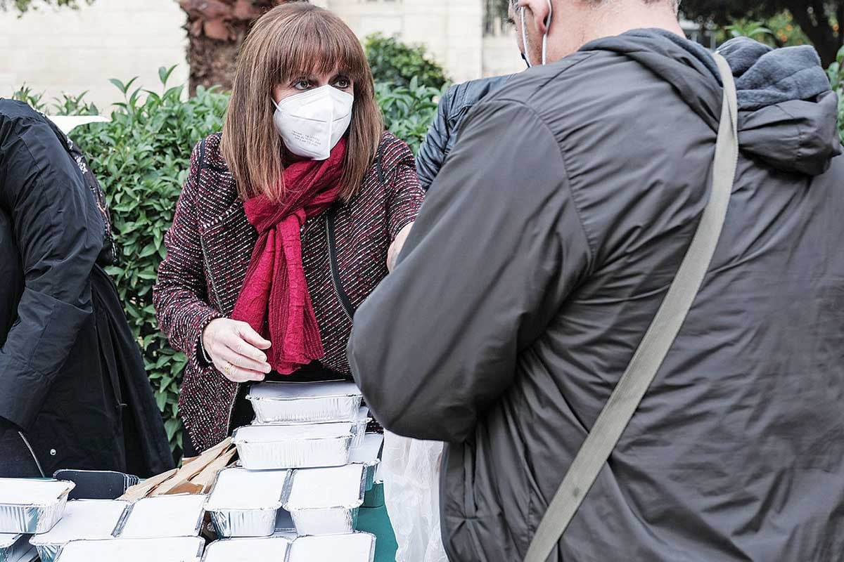 ● Την παραμονή των Χριστουγέννων του 2020, όταν μοίραζε η ίδια συσσίτια φτιαγμένα από την «Κουζίνα» του Πολυχρονόπουλου (βλ. κεντρική φωτό), ζήτησε από κάποια αρμόδια υπηρεσία να ελέγξει τις υγειονομικές προδιαγραφές αυτής της υπόθεσης;