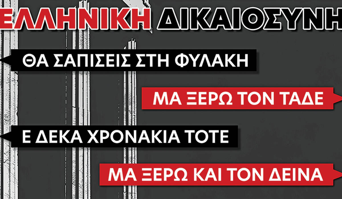 ● Δεν είναι τυχαίο, άλλωστε, που μας έχουν πάρει χαμπάρι και στας Ευρώπας και μας κογιονάρουν για τη δικαιοσύνη που ΔΕΝ απονέμεται στην Ελλάδα.