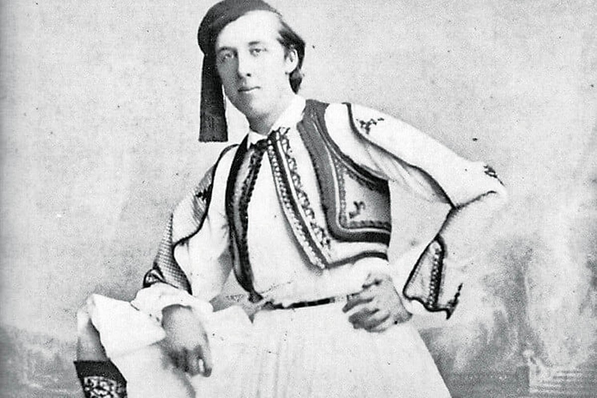 ● Η αναφορά του Ουάιλντ στους Ελληνες δεν είναι τυχαία. Ο ίδιος διέπετο από έντονα φιλελληνικά αισθήματα. Στη φωτογραφία τον βλέπουμε να ποζάρει φορώντας φουστανέλα. Το έκανε κατά τη διάρκεια του ταξιδιού του στην Ελλάδα, το έτος 1877.