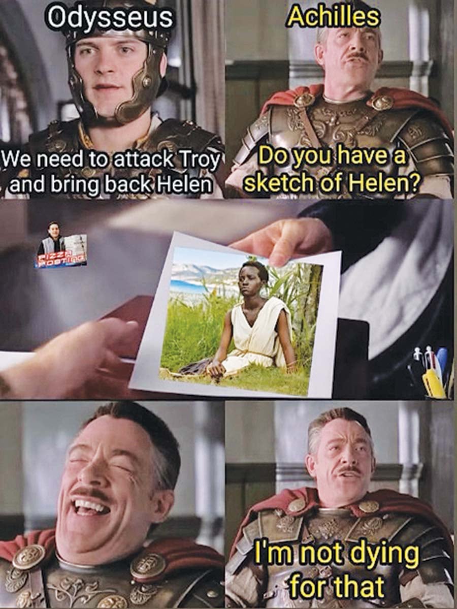 ● Επειδή ο πλανήτης Γη είναι, μάλλον, ενήμερος για την καταγωγή, το κάλλος και το χρώμα της Ελένης, η ανάθεση του ρόλου στη Λουπίτα Νιόνγκο έχει γίνει αφορμή διαδικτυακού χαβαλέ.
