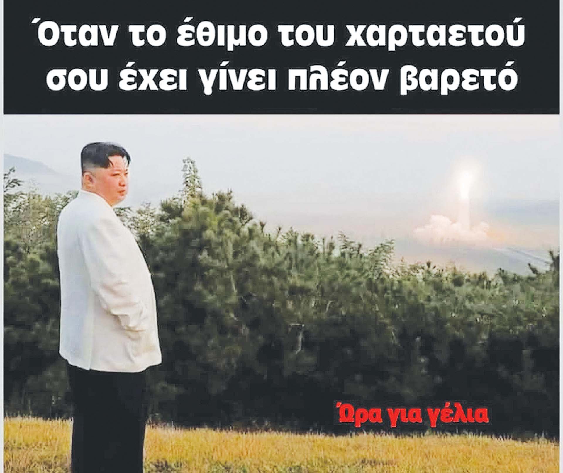 ● Κι επειδή χθες ήταν Καθαροδευτέρα, λάβετε και ένα σατιρικό μιμίδιον με τον Κιμ Γιονγκ Ουν να πετά τον δικό του χαρταετό!