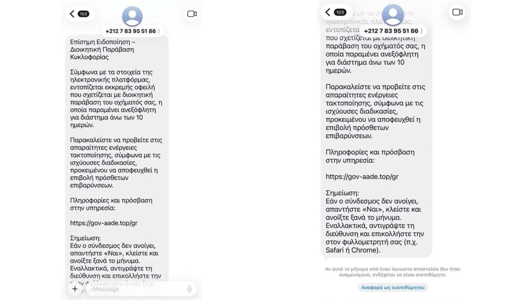 ● Ωστόσο, επειδή η τέχνη και η τεχνική της εξαπάτησης έχουν… ταβανιάσει στις μέρες μας, υπάρχει η πιθανότητα να δείτε τέτοιο μήνυμα να έχει σταλεί από ελληνικό αριθμό ή στον αποστολέα να αναφέρεται, ψευδώς, ελληνική υπηρεσία.