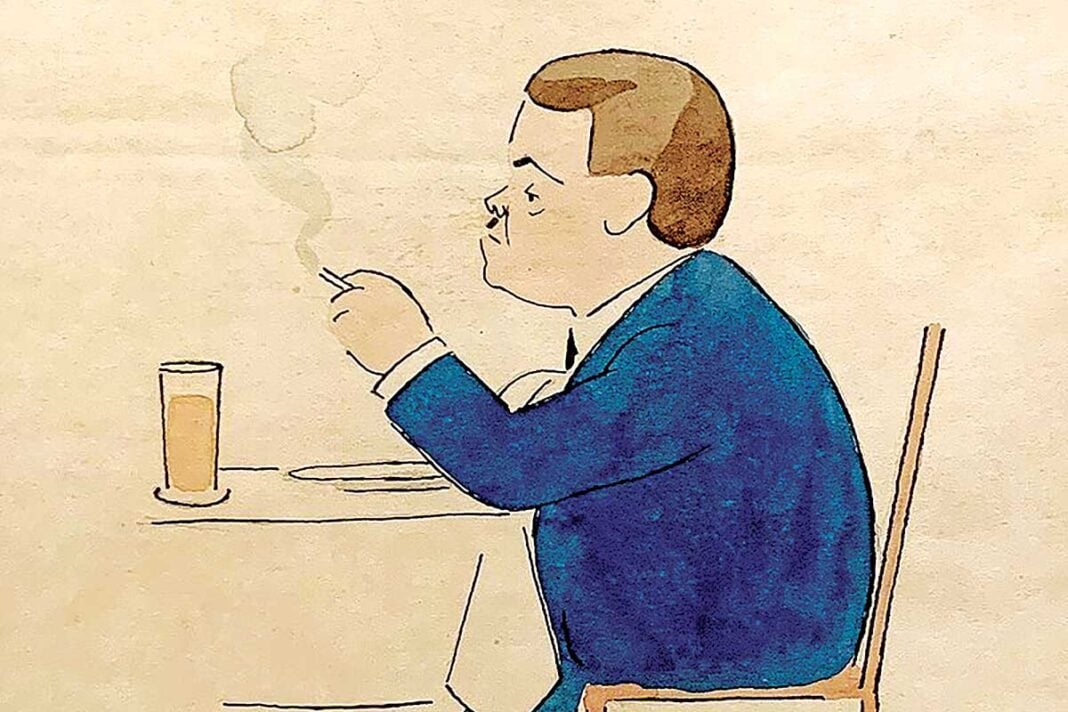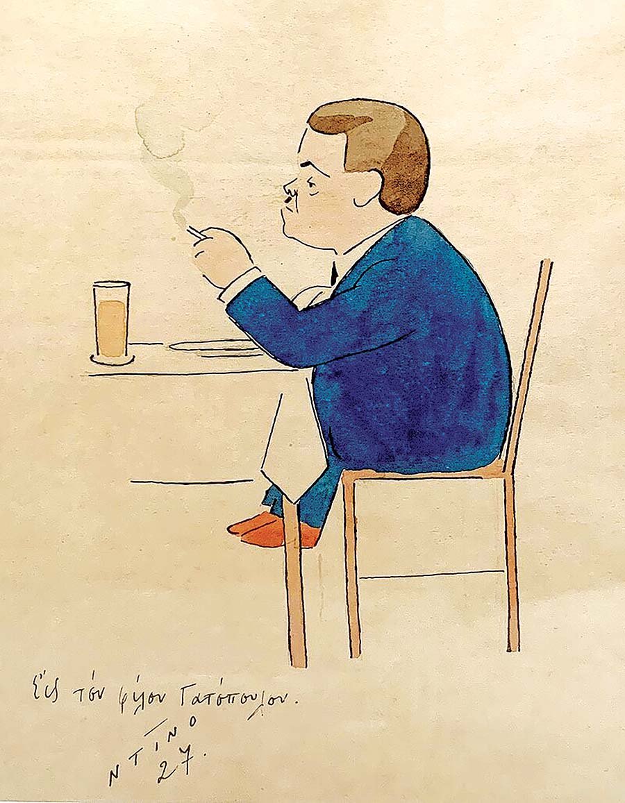 Ο Δημήτριος Γατόπουλος όπως τον είδε και τον σχεδίασε ο Ντίνο (1890-1938). Γελοιογραφία (1927)