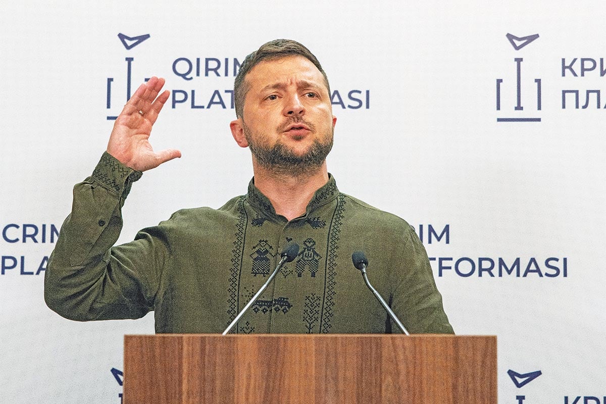 «Πρέπει να απελευθερώσουμε την Κριμαία από την κατοχή» είπε. «Θα είναι η αποκατάσταση του παγκόσμιου νόμου και της τάξης» πρόσθεσε παίρνοντας τον ρόλο του παγκόσμιου αστυφύλακα που παραδοσιακά κρατούν οι ΗΠΑ. Η Ρωσία δεν έχει δώσει καμία ένδειξη ότι θα εγκαταλείψει την Κριμαία, έδρα του ρωσικού στόλου της Μαύρης Θάλασσας, και έχει χρησιμοποιήσει τη χερσόνησο ως εξέδρα απ’ όπου εξαπολύει πυραυλικά πλήγματα σε ουκρανικούς στόχους. «Παρά τις (ρωσικές) απειλές, η Ουκρανία είναι αρκετά ισχυρή για να διακρίνει τις προοπτικές για μια ουκρανική Κριμαία» είπε ο Ζελένσκι. «Η αποκατάσταση από την Ουκρανία του ελέγχου στη χερσόνησο της Κριμαίας θα είναι ένα ιστορικό αντιπολεμικό βήμα στην Ευρώπη που θα αποκαθιστά την ασφάλεια και τη δικαιοσύνη».