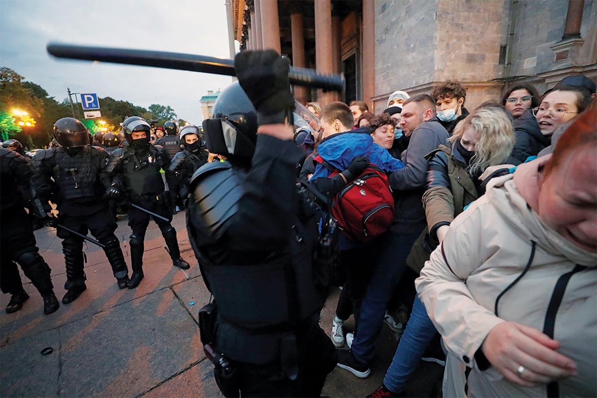Οι εικόνες από τις συγκρούσεις διαδηλωτών που βγήκαν στους δρόμους το βράδυ της Τετάρτης, σε πάνω από 15 πόλεις της Ρωσίας, για να διαμαρτυρηθούν κατά του πολέμου με τις δυνάμεις καταστολής έκαναν τον γύρο του κόσμου. Παρ’ όλ’ αυτά, το Κρεμλίνο επιμένει.