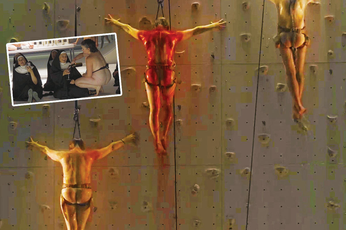 Σώματα κρεμασμένα σε έναν σταυρό, αναπαράσταση της σταύρωσης με αίμα που αναβλύζει σαν νερό, ο Ιησούς Χριστός να δίνει κρασί στις καλόγριες πριν καταλήξει να τις μαστιγώνει στα οπίσθια γυμνές, μια γυναίκα νάνος ντυμένη πάπας, περιπτύξεις ομοφυλοφιλίας… Αυτές είναι μερικές μόνο από τις σκηνές εξευτελισμού του χριστιανισμού. Οι περισσότεροι από τους τραγουδιστές αυτής της όπερας εμφανίζονται επίσης με την πιο απέριττη ενδυμασία και επιδίδονται σχεδόν όλοι μαζί σε σκηνές σεξουαλικής βίας, που στις μέρες μας αποκαλείται και «τέχνη».