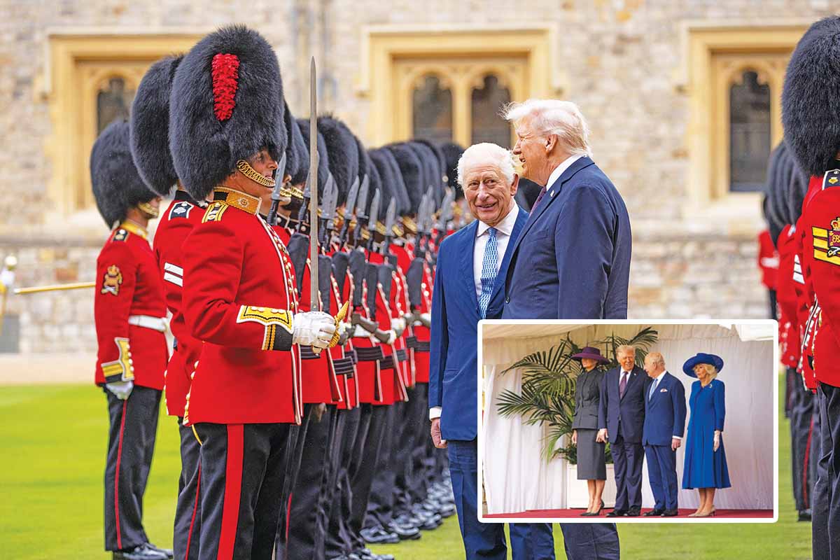 Ηταν λίγο μετά τις 16.00, ώρα Ελλάδας, όταν ο βασιλιάς Κάρολος και η βασίλισσα Καμίλα υποδέχθηκαν το προεδρικό ζεύγος της Αμερικής στο κάστρο του Ουίνδσορ, όπου και άρχισε -υπό δρακόντεια μέτρα ασφαλείας- η δεύτερη επίσημη επίσκεψη του Ντόναλντ Τραμπ στη Βρετανία. Την εντυπωσιακή τελετή της υποδοχής άνοιξε πομπή με άμαξες και έφιππους στρατιωτικούς από το Σύνταγμα Εφιππης Φρουράς, η οποία πλαισιωνόταν από μέλη των ενόπλων δυνάμεων και των τριών σωμάτων, του βασιλικού ναυτικού, της αεροπορίας (RAF) και του στρατού, ενώ λίγο αργότερα ο πρόεδρος Τραμπ επιθεώρησε την τιμητική φρουρά, αφού πρώτα ακούστηκαν οι εθνικοί ύμνοι των δύο χωρών.