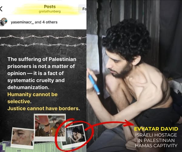 Την πάτησε ακόμα και η βιρτουόζος των κοινωνικών δικτύων Γκρέτα Τούνμπεργκ η οποία θέλοντας να πρευαισθητοποιήσει το κοινό της για την τις συνθήκες κράτησης των Παλαιστίνιων στο Ισραήλ αναδημοσίευσε μια ανάρτηση στο Instagram που όμως αφορούσε αιχμάλωτο της Χαμάς!