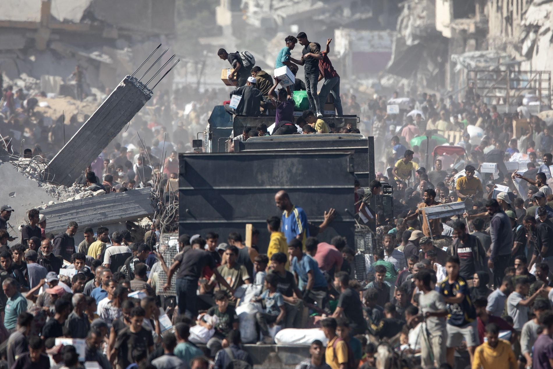 Φορτηγά με ανθρωπιστική βοήθεια εισήλθαν από το πέρασμα Κερέμ Σαλόμ, ενώ άλλα περίμεναν στη Ράφα, στα σύνορα με την Αίγυπτο. Παρά ταύτα, σημειώθηκαν περιστατικά λεηλασιών προμηθειών, με ντόπιους να ζητούν καλύτερη οργάνωση στη διανομή.
