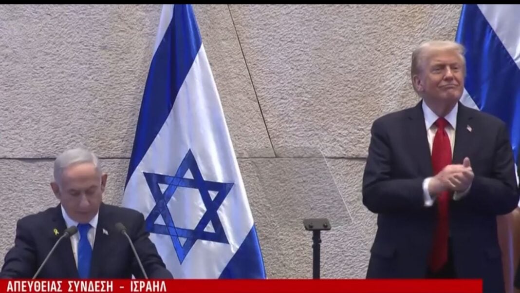 Σε μια ιστορική και φορτισμένη στιγμή για το Ισραήλ, ο πρωθυπουργός Μπενιαμίν Νετανιάχου ανέβηκε καταχειροκροτούμενος στο βήμα της Κνεσέτ, παρουσία του προέδρου των Ηνωμένων Πολιτειών, Ντόναλντ Τραμπ. Η συνάντηση των δύο ανδρών σηματοδότησε μια ημέρα που, όπως τόνισε ο ίδιος ο Νετανιάχου, «θα γραφτεί στην ιστορία του έθνους μας».