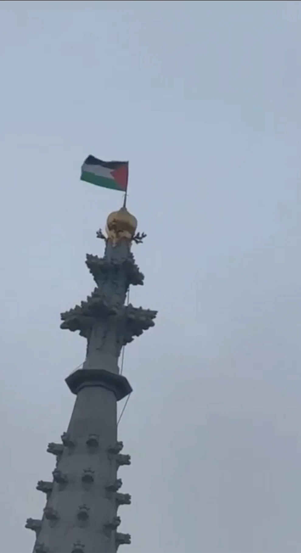 Someone in Vienna have placed Palestine flags on the Votive Church. This is an attack on Christians and a provocative gesture of Islamic conquest. pic.twitter.com/pKXMDmGeu8