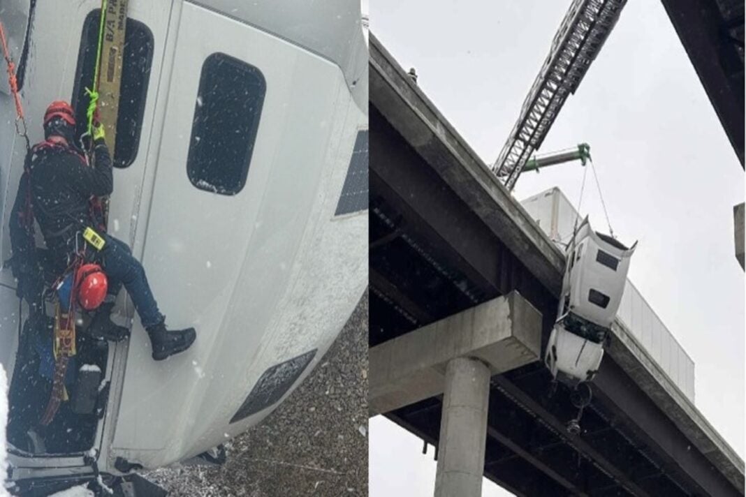 First responders in West Virginia rescued a semi-truck driver after the cab of his vehicle was left dangling from a highway bridge Tuesday amid snowy weather in West Virginia. https://t.co/1WfJH9f8RU pic.twitter.com/f0yOw6KcYj