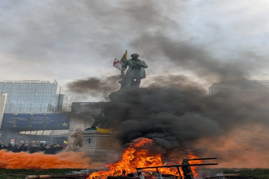 Ισχυρές αστυνομικές δυνάμεις είχαν αναπτυχθεί από νωρίς στην πόλη για να προστατεύσουν τους ευρωπαϊκούς θεσμούς. Στην Πλατεία Λουξεμβούργου, μπροστά από το κτίριο του Ευρωπαϊκού Κοινοβουλίου, το κλίμα ήταν τεταμένο, με τους αγρότες να έχουν βάλει φωτιά σε ελαστικά και σε κάδους απορριμμάτων.