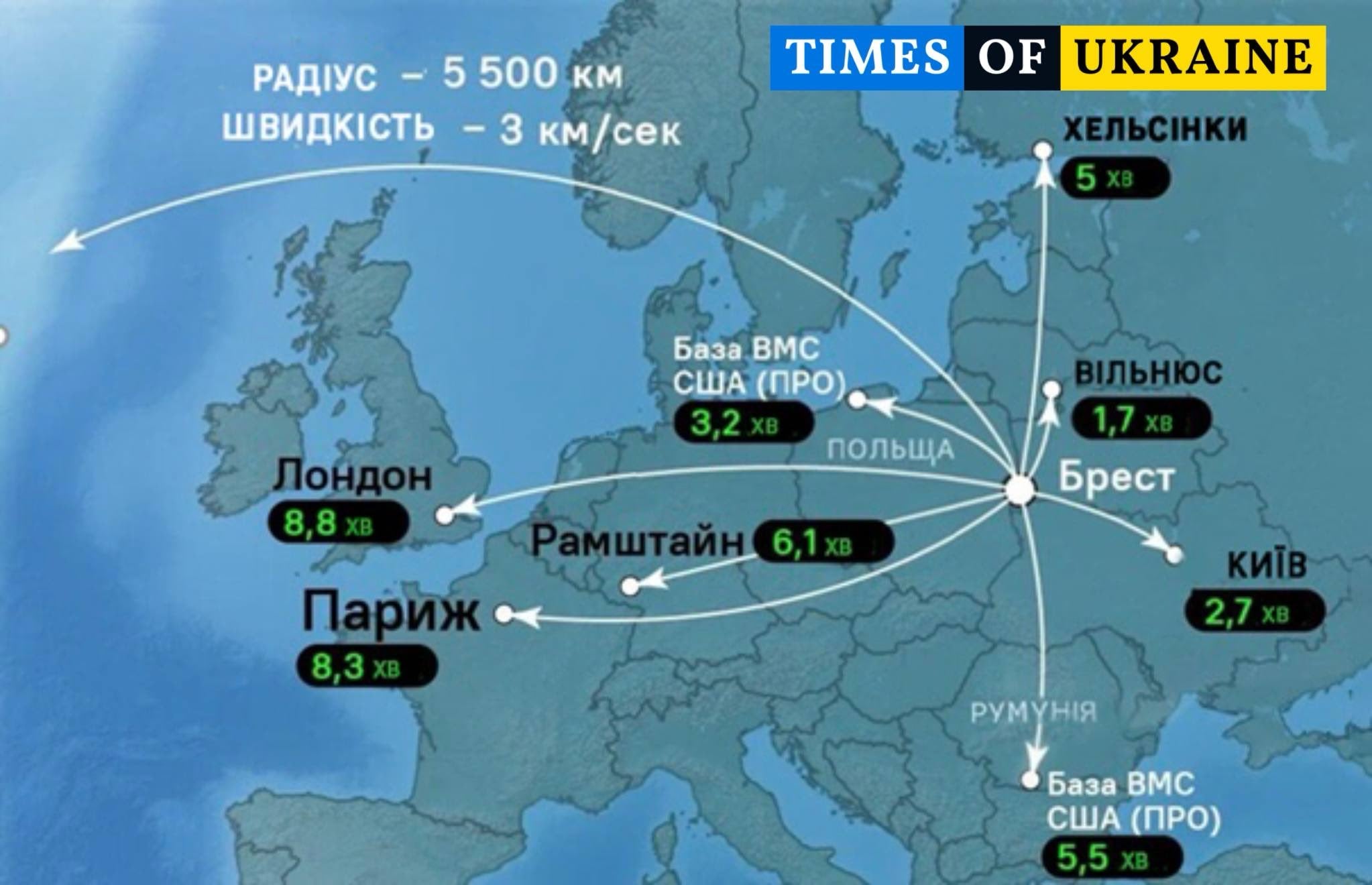 Από την Λευκορωσία, οι Ρώσοι μπορούν πλέον να χτυπήσουν Λονδίνο, Παρίσι, Βερολίνο σε δευτερόλεπτα όπως δείχνει και ο χάρτης στο τέλος του κειμένου.