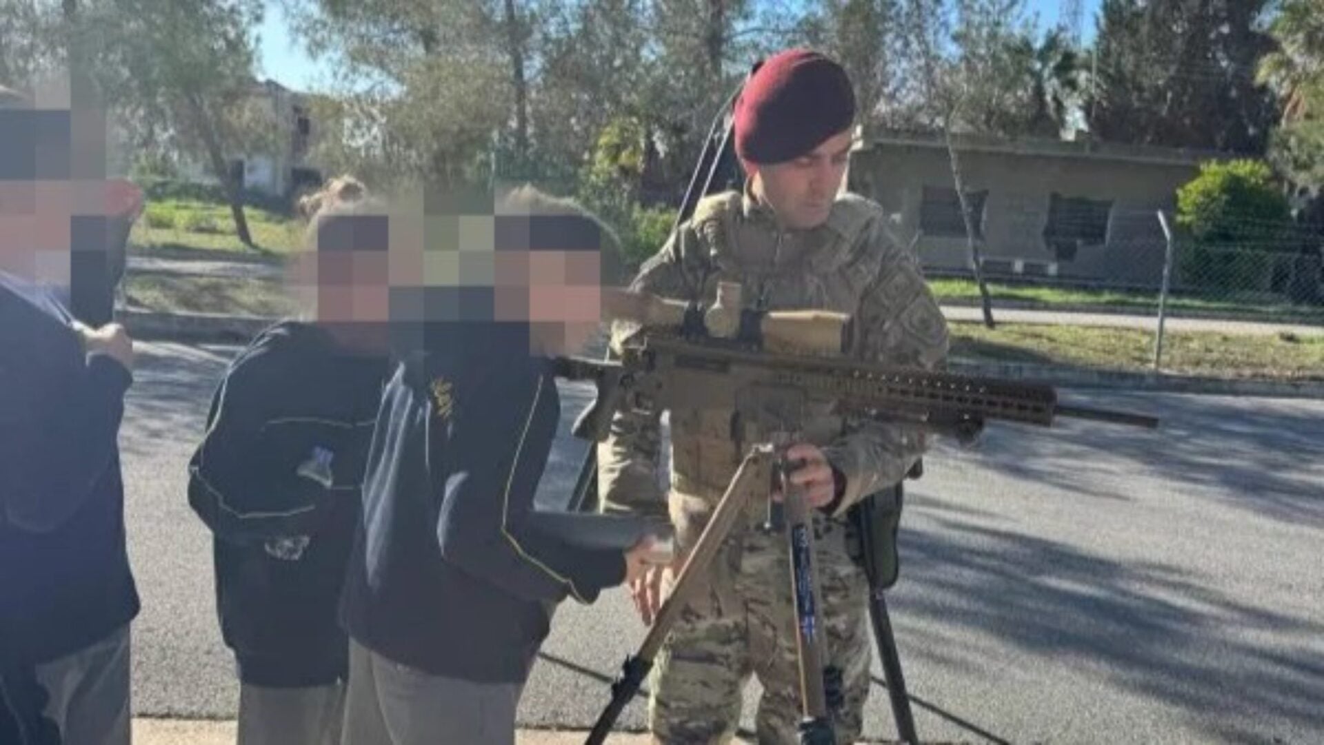Σύμφωνα με αναρτήσεις στους επίσημους λογαριασμούς του σχολείου, που διαγράφηκαν λίγες ώρες αργότερα, οι μαθητές της ΣΤ΄ Δημοτικού φωτογραφήθηκαν κρατώντας όπλα και ποζάροντας μπροστά σε στρατιωτικό εξοπλισμό.
