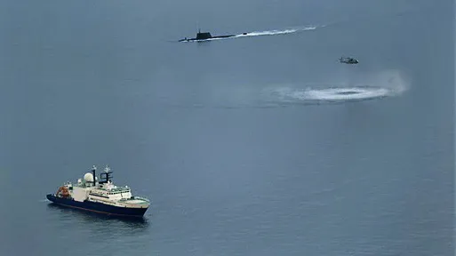 Ένα βρετανικό υποβρύχιο “hunter–killer” αναδύθηκε κοντά στο ρωσικό πλοίο, σε επίδειξη ισχύος, και μετέδωσε μέσω ασυρμάτου:
