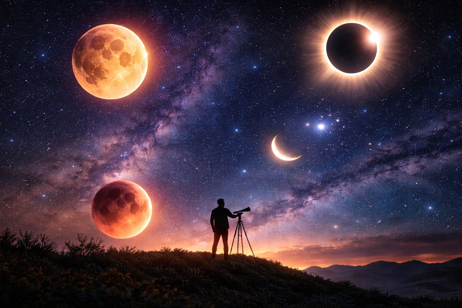 Το 2026 προμηνύεται μια εξαιρετικά πλούσια χρονιά για τους φίλους της αστρονομίας και της παρατήρησης του νυχτερινού ουρανού. Το νέο σεληνιακό έτος θα προσφέρει μια εντυπωσιακή ακολουθία φαινομένων: υπερπανσέληνους, μια δραματική ολική ηλιακή έκλειψη, μια ολική σεληνιακή έκλειψη με «ματωμένη» Σελήνη, αλλά και πολλές όμορφες συνόδους της λεπτής ημισελήνου με φωτεινούς πλανήτες και αστρικά σμήνη.