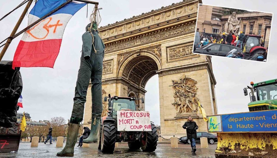 Η κυβέρνηση Λεκορνί, αντί να δώσει απαντήσεις στα καυτά προβλήματα και στις διεκδικήσεις των Γάλλων αγροτών, κινητοποίησε εναντίον τους τα τεθωρακισμένα άρματα της αστυνομίας Centaure, που είναι σχεδιασμένα για ταραχές και τρομοκρατικές ενέργειες, ενώ προχώρησε σε συλλήψεις περίπου 25 αγροτών στην περιφέρεια του Παρισιού και σε επιβολή προστίμων (όπως η κυβέρνηση Μητσοτάκη), που φτάνουν έως και τα 680 ευρώ για παρεμπόδιση της κυκλοφορίας και άλλες παραβάσεις. Μια τακτική υπαγορευμένη από τις Βρυξέλλες, που στις 12 Ιανουαρίου ετοιμάζονται να επικυρώσουν, με την υπογραφή της Ούρσουλα φον ντερ Λάιεν, τη συμφωνία «Mercosur».