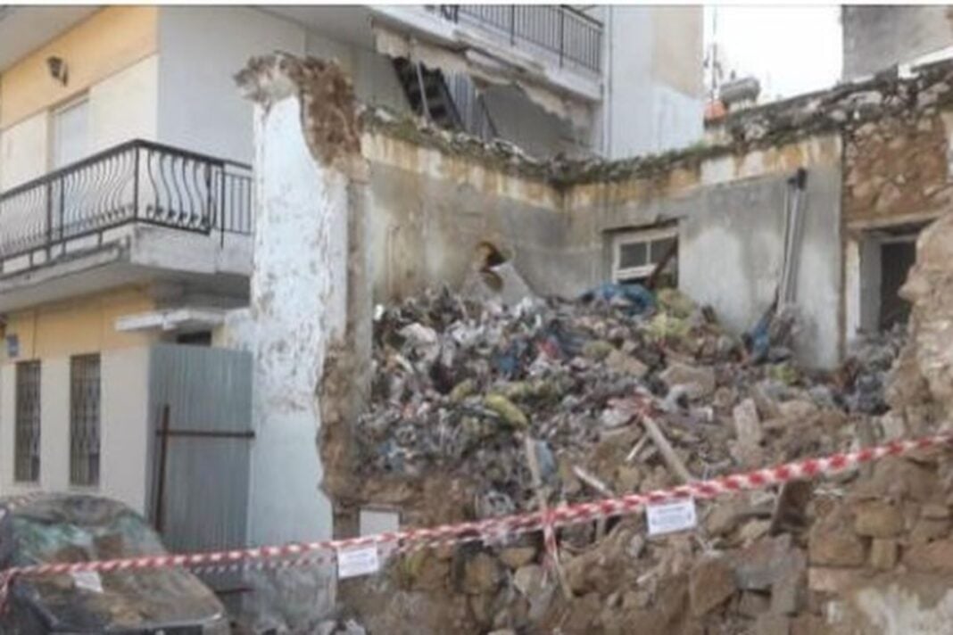 Ο θόρυβος που ακούστηκε στη γειτονιά της οδού Μακεδονίας ήταν εκκωφαντικός. Όταν οι κάτοικοι βγήκαν από τα σπίτια τους είδαν το εγκαταλελειμμένο σπίτι να έχει γίνει ένας σωρός από μπάζα.
