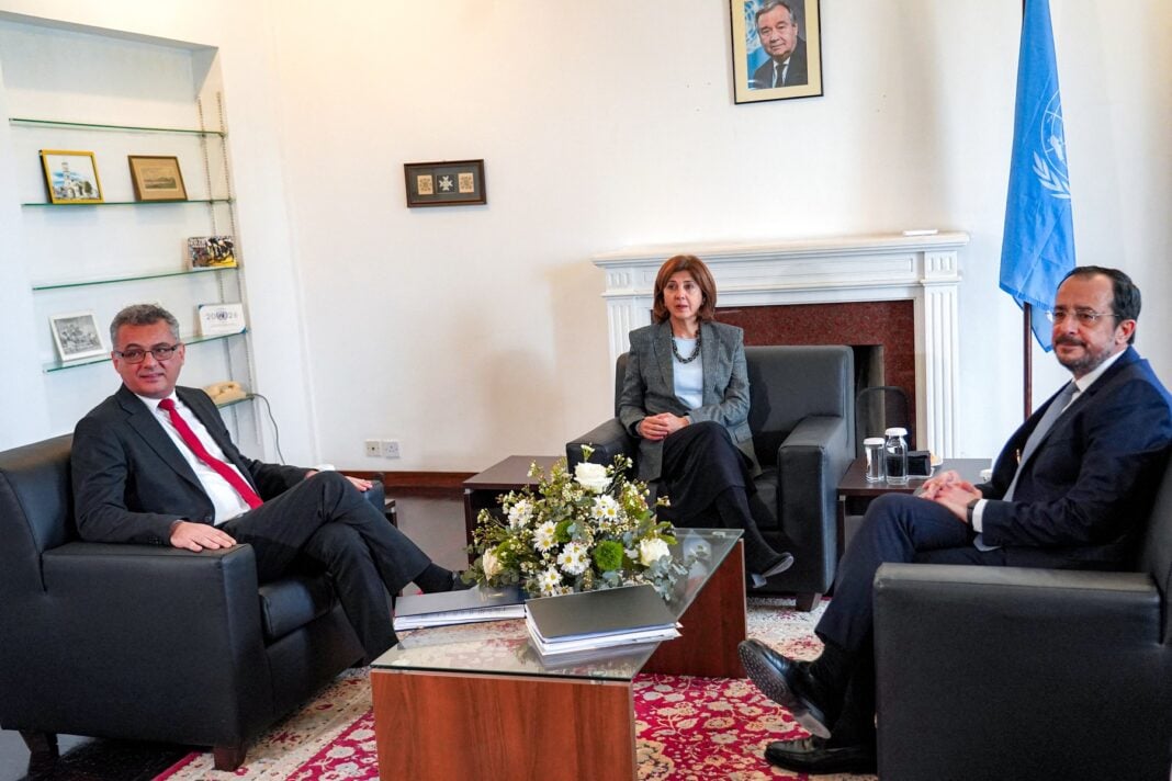 Χωρίς απτά σημάδια σύγκλισης και χωρίς την έκδοση κοινού ανακοινωθέντος ολοκληρώθηκε η τριμερής συνάντηση για το Κυπριακό, που πραγματοποιήθηκε στη νεκρή ζώνη της Λευκωσίας, παρουσία της προσωπικής απεσταλμένης του Γενικού Γραμματέα των Ηνωμένων Εθνών, Μαρίας Άνχελα Ολγκίν, και των ηγετών των δύο κοινοτήτων, Νίκου Χριστοδουλίδη και Τουφάν Ερχιουρμάν.