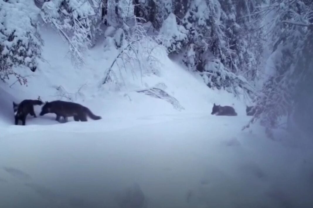 Μια αγέλη λύκων διασχίζει αθόρυβα το χιονισμένο δάσος, κινούμενη με απόλυτο συγχρονισμό και σχεδόν χωρίς να αφήνει ίχνη πίσω της, σε ένα στιγμιότυπο που αποτυπώνει την άγρια ζωή σε όλη της την αυθεντικότητα.
