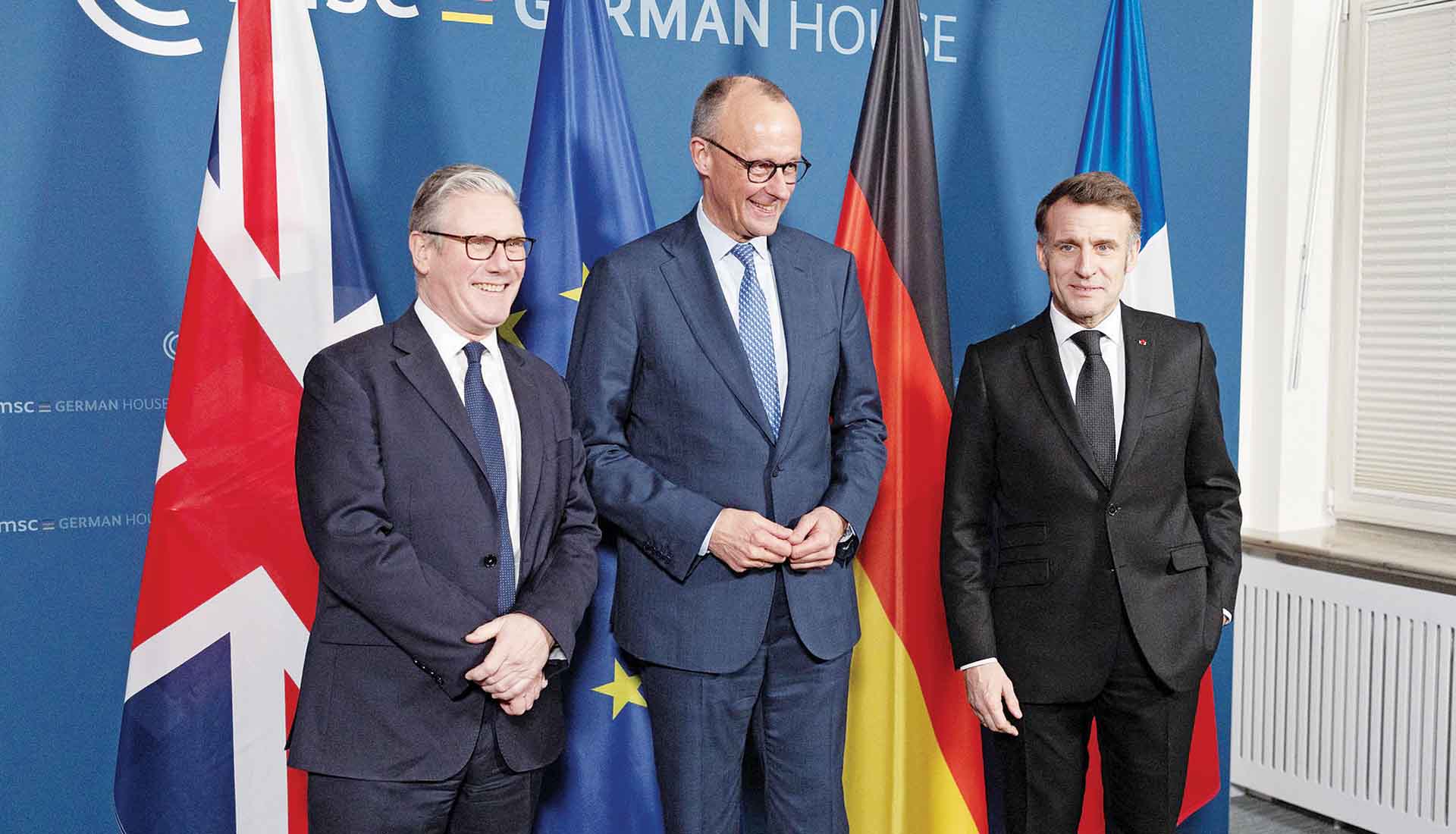 Από την πλευρά του, ο Γάλλος πρόεδρος υπογράμμισε ότι η Ευρώπη πρέπει να γίνει «γεωπολιτική δύναμη» και πρόσθεσε πως ότι η διαδικασία έχει ήδη αρχίσει, αλλά ότι οι Ευρωπαίοι πρέπει να την «επιταχύνουν». Σημείωσε, επίσης, πως η ευρωπαϊκή «αρχιτεκτονική ασφάλειας πρέπει να επανασχεδιαστεί», ενώ επιβεβαίωσε πως βρίσκεται σε επαφή με τον Γερμανό καγκελάριο σχετικά με τα πυρηνικά όπλα.