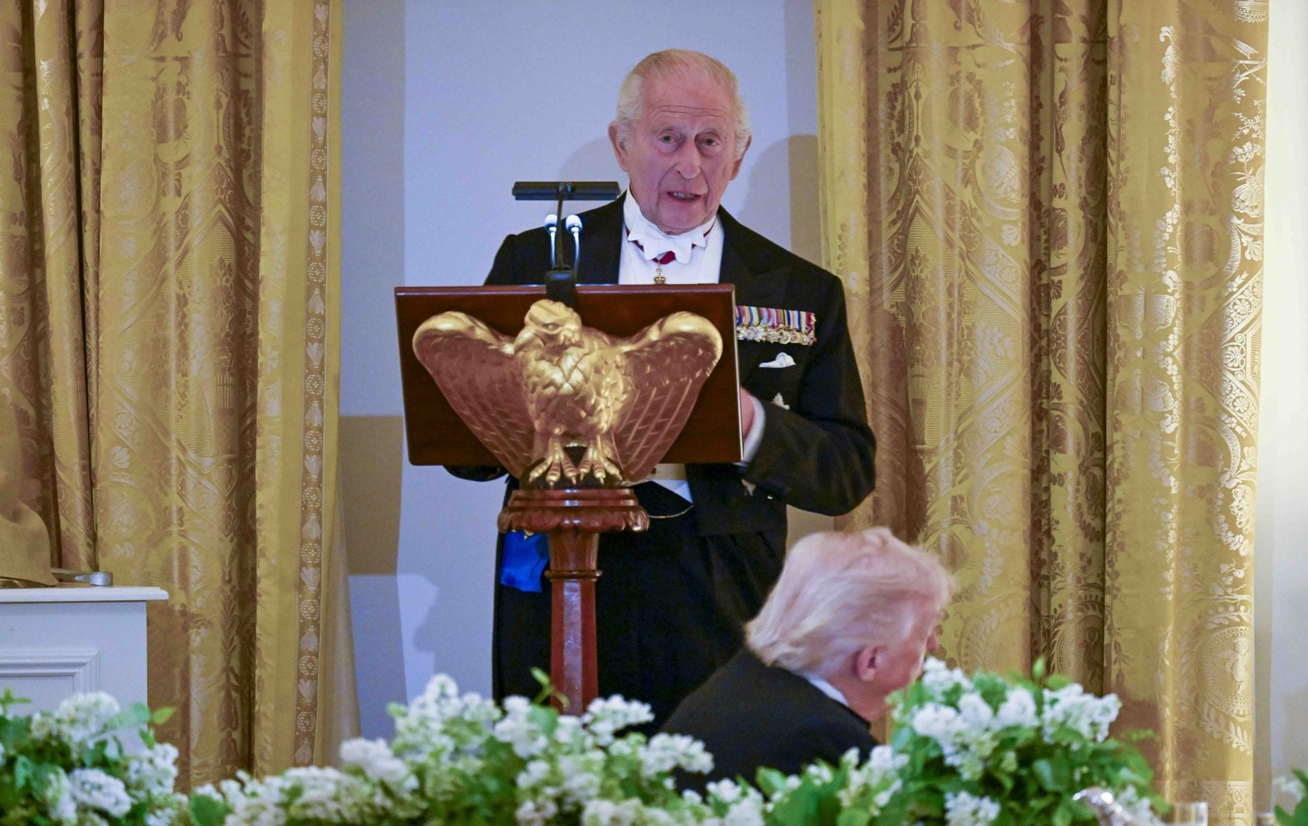 Ο Βασιλιάς Κάρολος έδωσε στον Ντόναλντ Τραμπ μια “πληρωμένη” απάντηση χθες, στο επίσημο δείπνο στον Λευκό Οίκο. Αναφέρθηκε στις δηλώσεις του Τραμπ στο Νταβός, όπου ο Αμερικανός πρόεδρος είχε πει στους Ευρωπαίους: “Χωρίς την αμερικανική υποστήριξη στον Β’ Παγκόσμιο Πόλεμο, θα μιλούσατε γερμανικά και λίγα ιαπωνικά”.