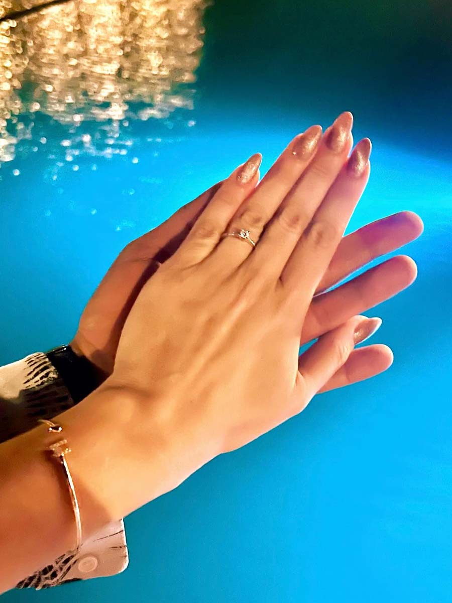 Συγκεκριμένα, η γνωστή δημοσιογράφος ανήμερα στα γενέθλιά της ανέβασε στον προσωπικό της λογαριασμό στο Instagram μια φωτογραφία που τα λέει όλα: τα χέρια του ζευγαριού ενώνονται και την ίδια στιγμή το εντυπωσιακό μονόπετρο λάμπει στο δάχτυλό της.