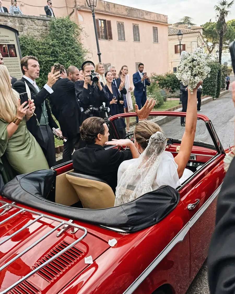 Και οι ευχές τους πραγματοποιήθηκαν, καθώς το ερωτευμένο ζευγάρι παντρεύτηκε στις 13/9/25 και ο γάμος τελέστηκε στην περιοχή Magliano Sabina, μια μικρή πόλη λίγο έξω από τη Ρώμη, γνωστή για την ύπαιθρο και τα ιστορικά της κτίσματα, με λειτουργό τον καρδινάλιο Giambattista Re. Τον ονειρικό γάμο, με το εκπληκτικό νυφικό υψηλής ραπτικής και το μπονζούρ του γαμπρού –ένδυμα που φοριέται σε γάμους γαλαζοαίματων και των παλιών αριστοκρατικών οικογενειών-, αποκάλυψαν με τις φωτό που δημοσιεύουμε η ιταλική και η αγγλική έκδοση της «Vogue».