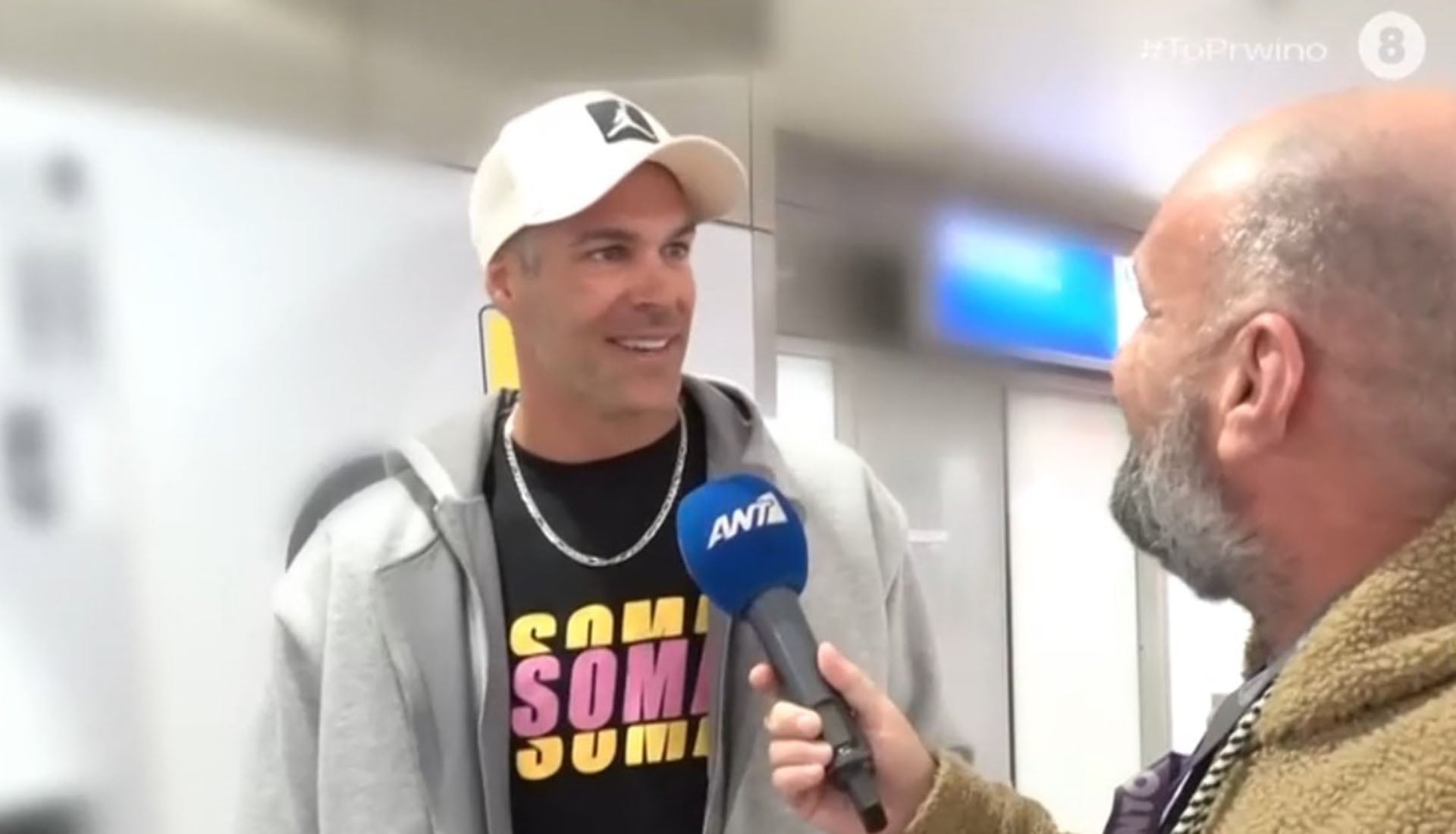 Η κάμερα της εκπομπής «Το Πρωινό» συνάντησε τον Μπρούνο Τσερέλα στο αεροδρόμιο Ελευθέριος Βενιζέλος και του απέσπασε δηλώσεις. Ο δημοσιογράφος του ΑΝΤ1 προσπάθησε να επιβεβαιώσει τις φήμες που κυκλοφορούν για τον γάμο του με την Αθηνά Οικονομάκου τον ερχόμενο Ιούνιο στην Πάρο.