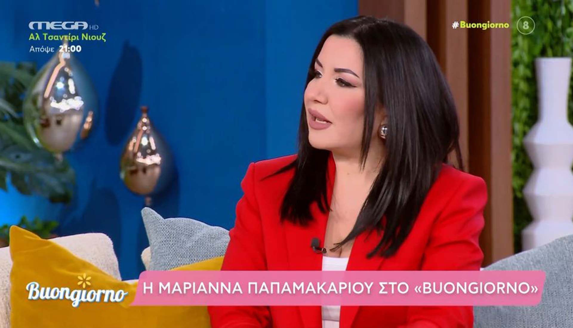 Η Μαριάννα Παπαμακαρίου, κάθισε στον καναπέ της εκπομπής «Buongiorno» και παραχώρησε μια συνέντευξη εφ’ όλης της ύλης. Η γνωστή τραγουδίστρια, μεταξύ άλλων, αναφέρθηκε στην μητέρα της, στην παιδική και εφηβική της ηλικία, αλλά και στη συνεργασία της με τον Αντώνη Ρέμο.