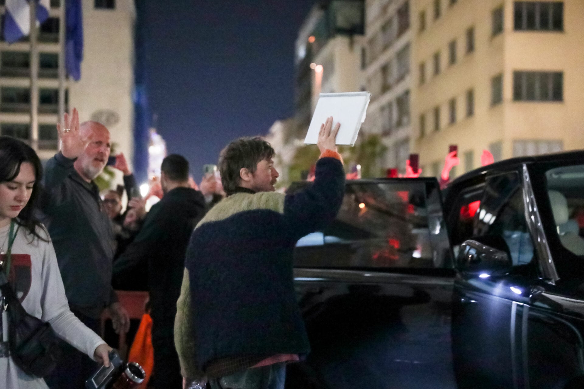 Αφού παρέμεινε περίπου μία ώρα στο καμαρίνι του, ο ηθοποιός βγήκε γύρω στις 16:10, φορώντας το γνωστό πλέον κοστούμι που φορά στην ταινία.