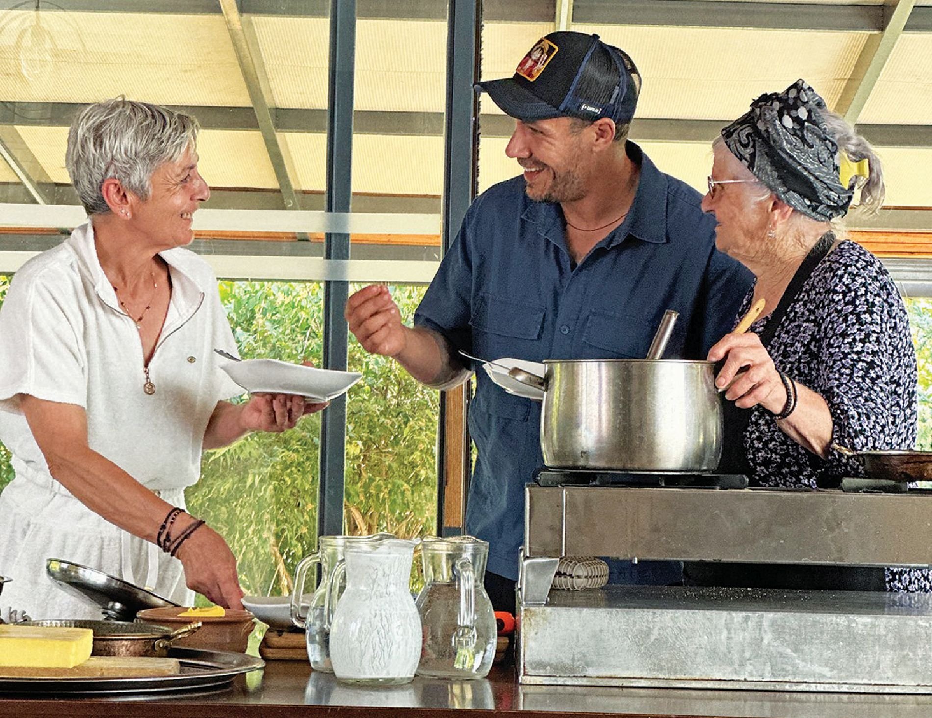 Ανάμεσα σε ξύλινα σκαριά και με φόντο το λιμάνι ξεδιπλώνονται ιστορίες μιας άλλης εποχής. Λίγα βήματα πιο πέρα, στην ταβέρνα Καρνάγιο, η Θωμαή σερβίρει σπιτικό φαγητό με γεύσεις που αντέχουν στον χρόνο: Αχνιστός βάτος, ψητή ντομάτα με φέτα και μια αίσθηση ότι βρίσκεσαι σε σαλόνι φίλου.