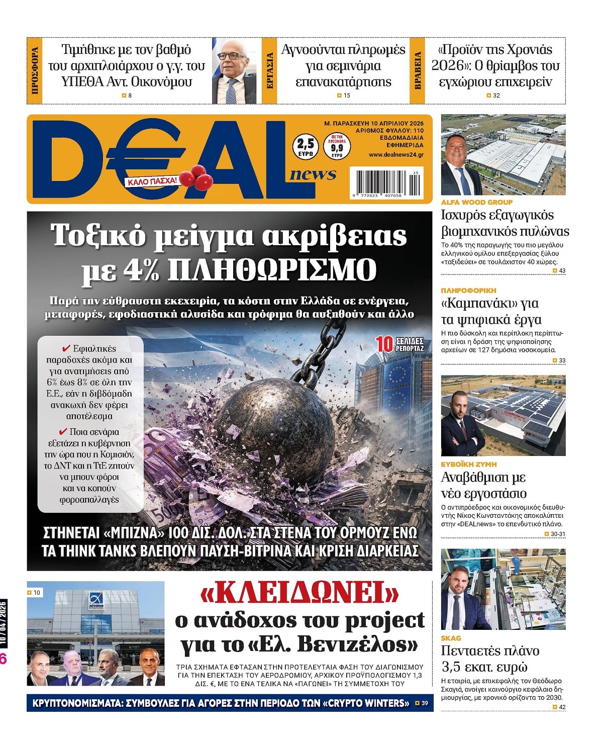 Η DEALnews κυκλοφορεί τη Μ. Παρασκευή στα περίπτερα, ανανεωμένη, με πλούσια ύλη, ρεπορτάζ και αναλύσεις από όλο τον κόσμο του επιχειρείν και της οικονομίας.