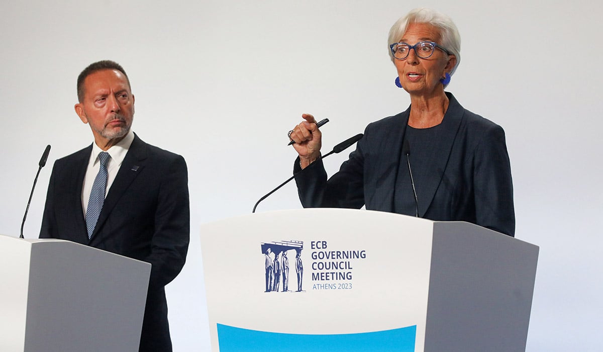 «Πάγο» στην αύξηση των επιτοκίων έβαλε η Ευρωπαϊκή Κεντρική Τράπεζα, κατά τη συνεδρίαση του διοικητικού της συμβουλίου που πραγματοποιήθηκε χθες και προχθές στην Αθήνα. Μάλιστα, μετά τη συνεδρίαση ακολούθησε και η καθιερωμένη συνέντευξη Τύπου υπό την επικεφαλής της ΕΚΤ Κριστίν Λαγκάρντ και τον οικοδεσπότη, διοικητή της Τραπέζης της Ελλάδος και μέλος του Δ.Σ. της ΕΚΤ Γιάννη Στουρνάρα.