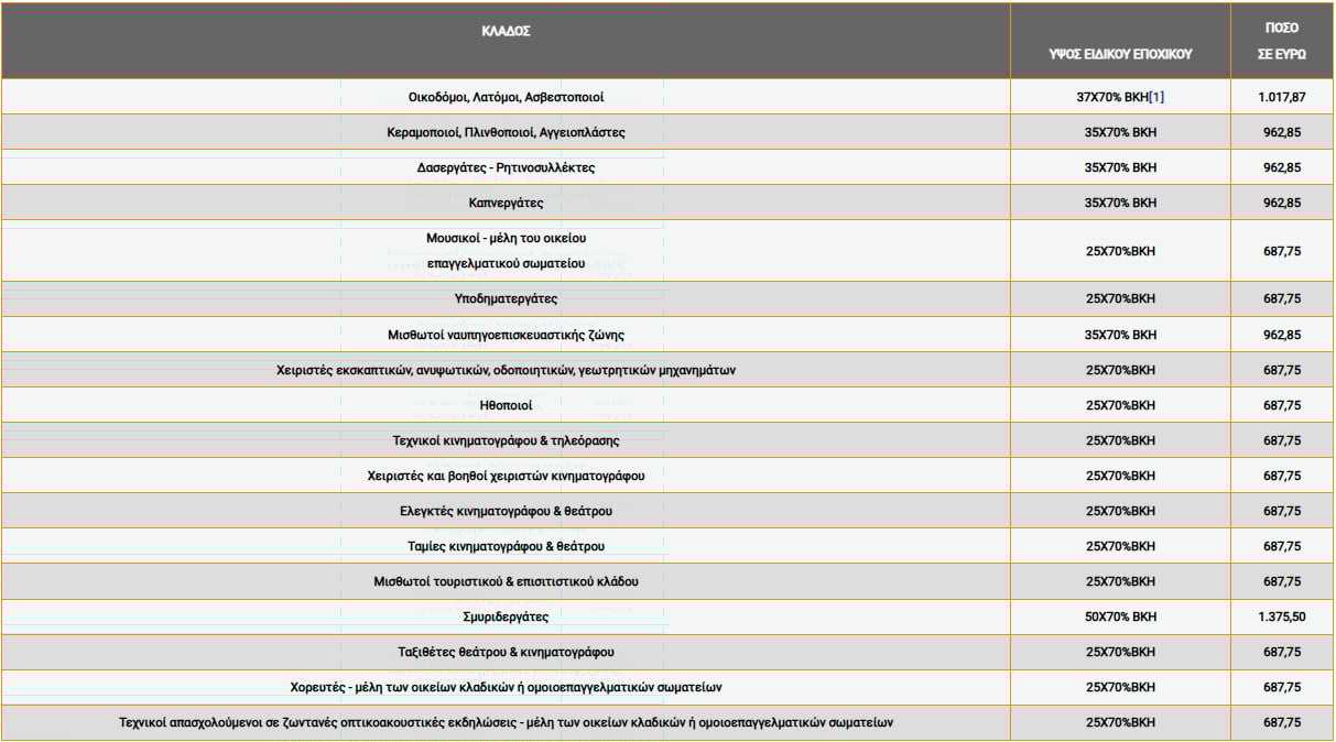 Ποσά από 687 έως 1.375 ευρώ για 18 επαγγέλματα