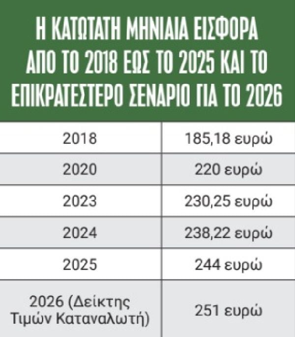 Για τον ίδιο ακριβώς λόγο ο ψηφισμένος νόμος δεν θα εφαρμοστεί ούτε από την 1η Ιανουαρίου του 2026. Εάν ληφθεί υπόψη ο Δείκτης Μεταβολής Μισθών, οι εισφορές θα έπρεπε να αυξηθούν κατά 5%, κάτι που δεν μπορεί να «σηκώσει» πολιτικά η κυβέρνηση. Ετσι, αναμένεται να διατηρηθεί το ισχύον σύστημα, που αυξάνει τις εισφορές κατά το ετήσιο ποσοστό του πληθωρισμού, που εκτιμάται σε 2,6%. Με αυτά τα δεδομένα, η κατώτατη εισφορά για την 1η ασφαλιστική κατηγορία αναμένεται να διαμορφωθεί στα 251 ευρώ τον μήνα και στην 6η κατηγορία θα είναι 676 ευρώ, από 659 ευρώ που είναι τώρα. Αν εφαρμοζόταν ο νόμος για την αύξηση των εισφορών κατά τον Δείκτη Μεταβολής Μισθών, η επιβάρυνση για την 1η κατηγορία θα έφτανε στα 257 ευρώ ευρώ και για την 6η κατηγορία στα 691 ευρώ.