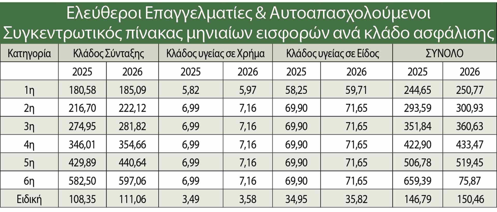 Αυξημένες εισφορές κατά τουλάχιστον 2,5% θα πληρώσουν φέτος περισσότεροι από 1,5 εκατ μη μισθωτοί (ελεύθεροι επαγγελματίες, αυτοαπασχολούμενοι, αγρότες). Μάλιστα, σήμερα λήγει η σχετική προθεσμία που έχει ορίσει ο ΕΦΚΑ προκειμένου να δηλώσουν την ασφαλιστική κατηγορία της επιλογής τους, με τον φορέα να υπογραμμίζει ότι αυτό δεν θα είναι δυνατό από αύριο Κυριακή. Ετσι, όποιος δεν προβεί σε δήλωση θα παραμείνει στην ίδια κατηγορία με αυτή που είχε επιλέξει για το 2025.