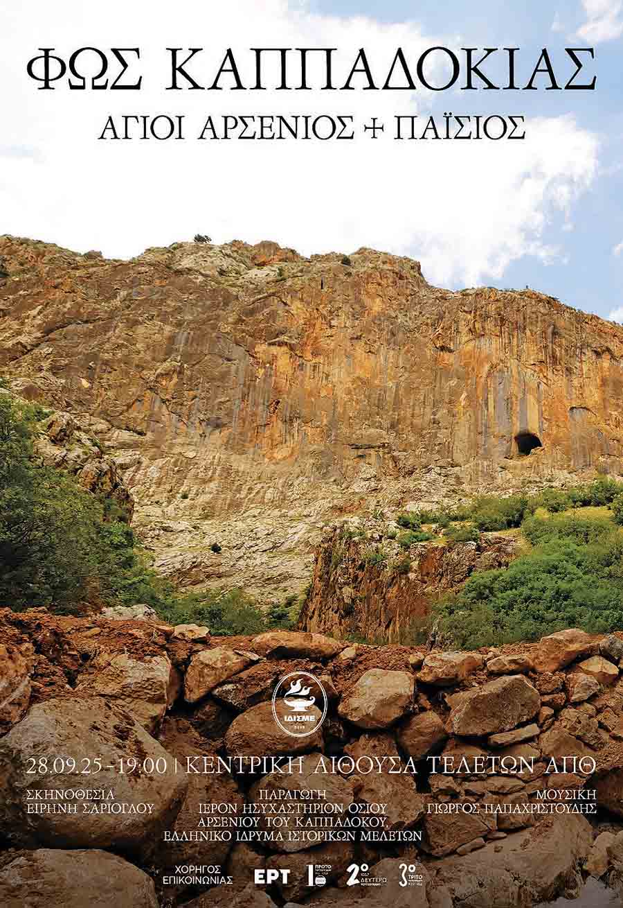 Πρόκειται για ένα ντοκιμαντέρ που φωτίζει την πνευματική και ιστορική πορεία δύο σπουδαίων μορφών της Ορθοδοξίας και του Ελληνισμού: του Αγίου Αρσενίου του Καππαδόκου και του Οσίου Παϊσίου του Αγιορείτη. Μέσα από αυθεντικά πλάνα από τα Φάρασα της Καππαδοκίας, ιστορικά τεκμήρια, μαρτυρίες και αφηγήσεις, όπως των δύο ανιψιών του Οσίου Παϊσίου, το έργο αναδεικνύει όχι μόνο τη βιογραφία των Αγίων, αλλά και το βαθύτερο αποτύπωμά τους στην εθνική και θρησκευτική συνείδηση των Ελλήνων.