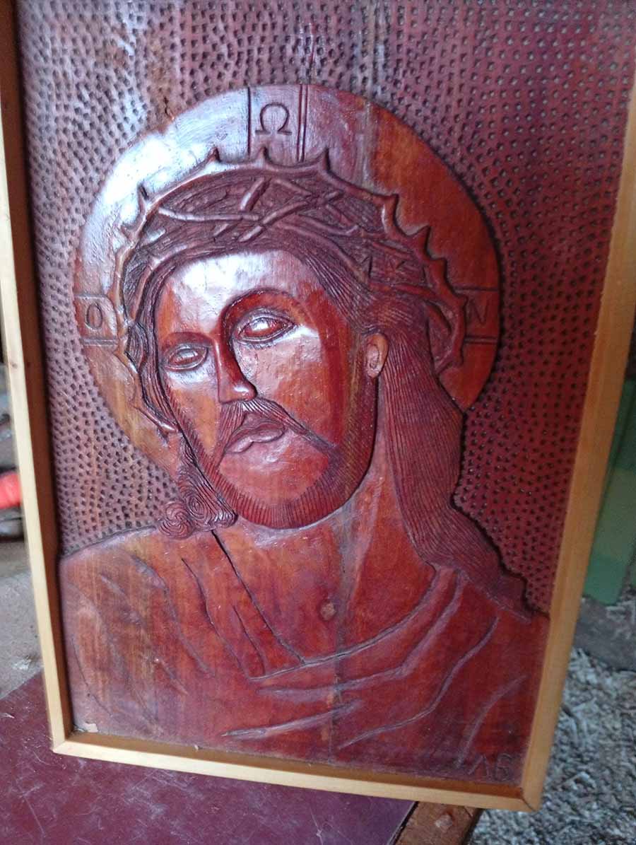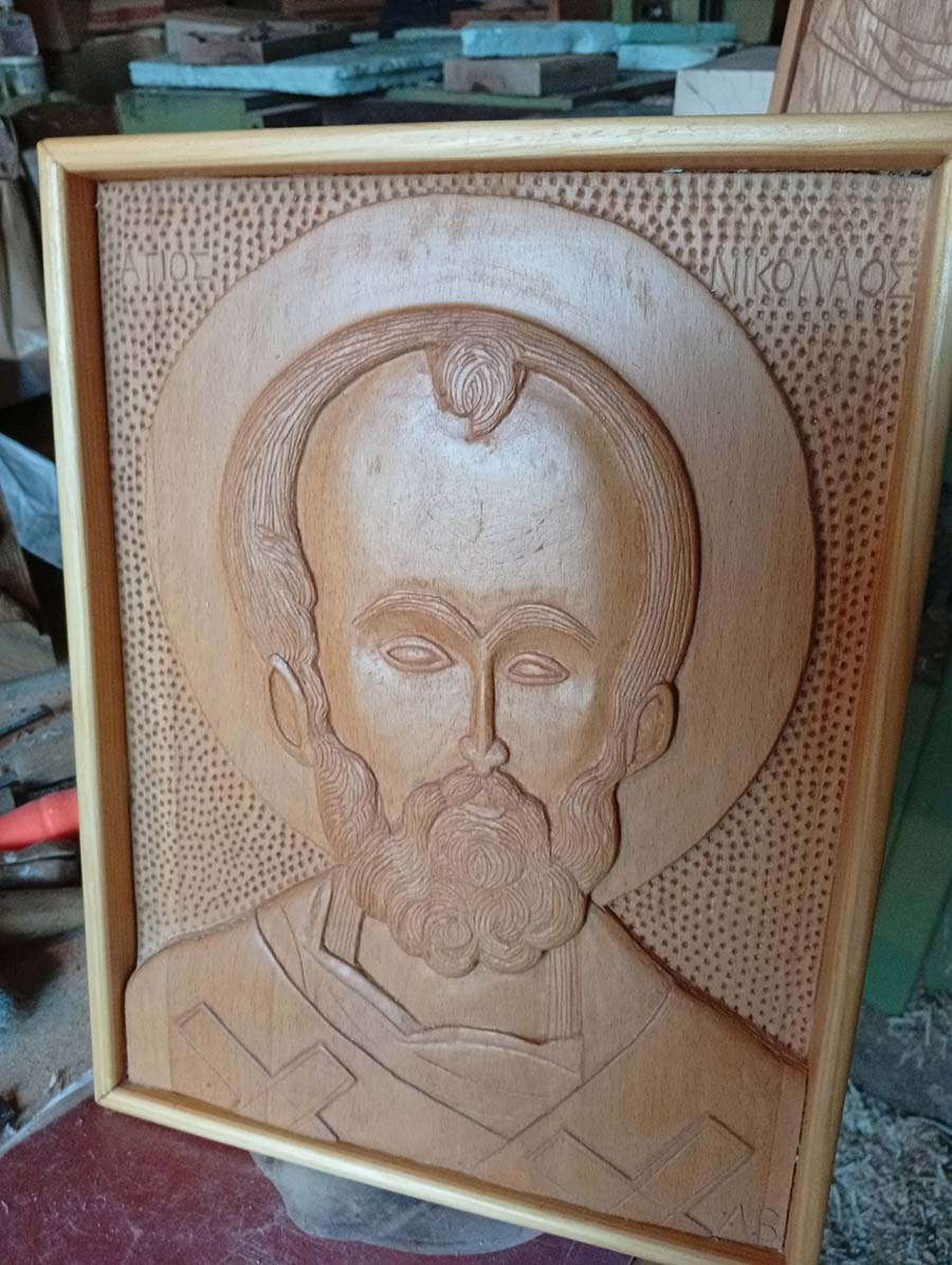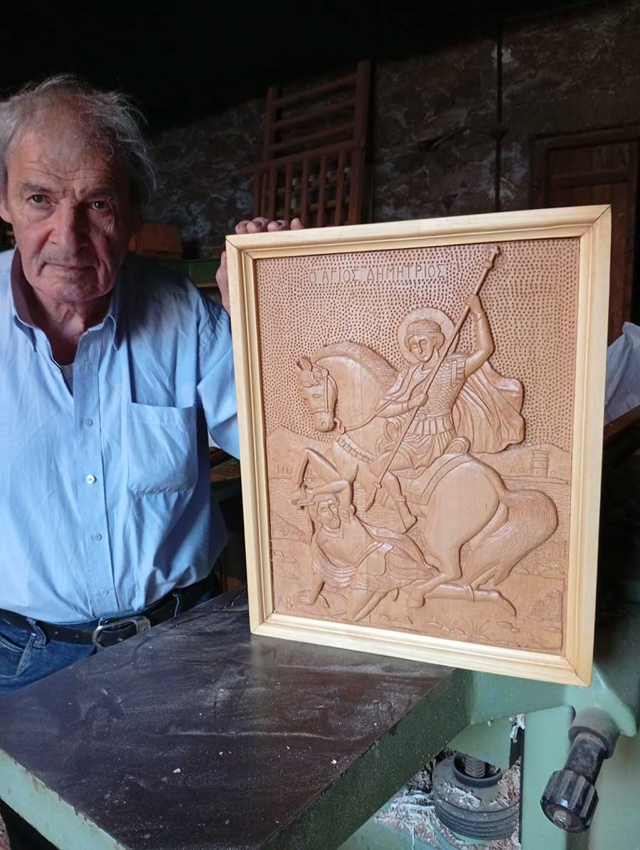 «Επειτα από αυτό συνέχισα και έφτιαξα και άλλα έργα. Πρώτα έκανα τον Ιησού Χριστό, ενώ βεβαίως φιλοτέχνησα και πολλές Παναγίες. Δεν περιορίστηκα σε αυτά, αφού έφτιαξα ακόμα την Αγία Αικατερίνη, την Αγία Παρασκευή, τον Αγιο Στυλιανό, τον Αγιο Δημήτριο, τον Αγιο Νικόλαο, τον Αγιο Αρτέμιο, τον Αγιο Ταξιάρχη από τον Μανταμάδο της Λέσβου, τον Αγιο Ραφαήλ, τον Αγιο Ανδρέα, τον Αγιο Ιγνάτιο κ.ά. Πολλά από τα παραπάνω έργα τα έχω επαναλάβει αρκετές φορές. Δεν ξεχωρίζω κάποιο από τα έργα μου, τα αγαπάω όλα το ίδιο! Εξάλλου δεν πρέπει να ξεχνάμε ότι η Εκκλησία τοποθετεί ισάξια όλους τους Αγίους τον ένα δίπλα στον άλλον».