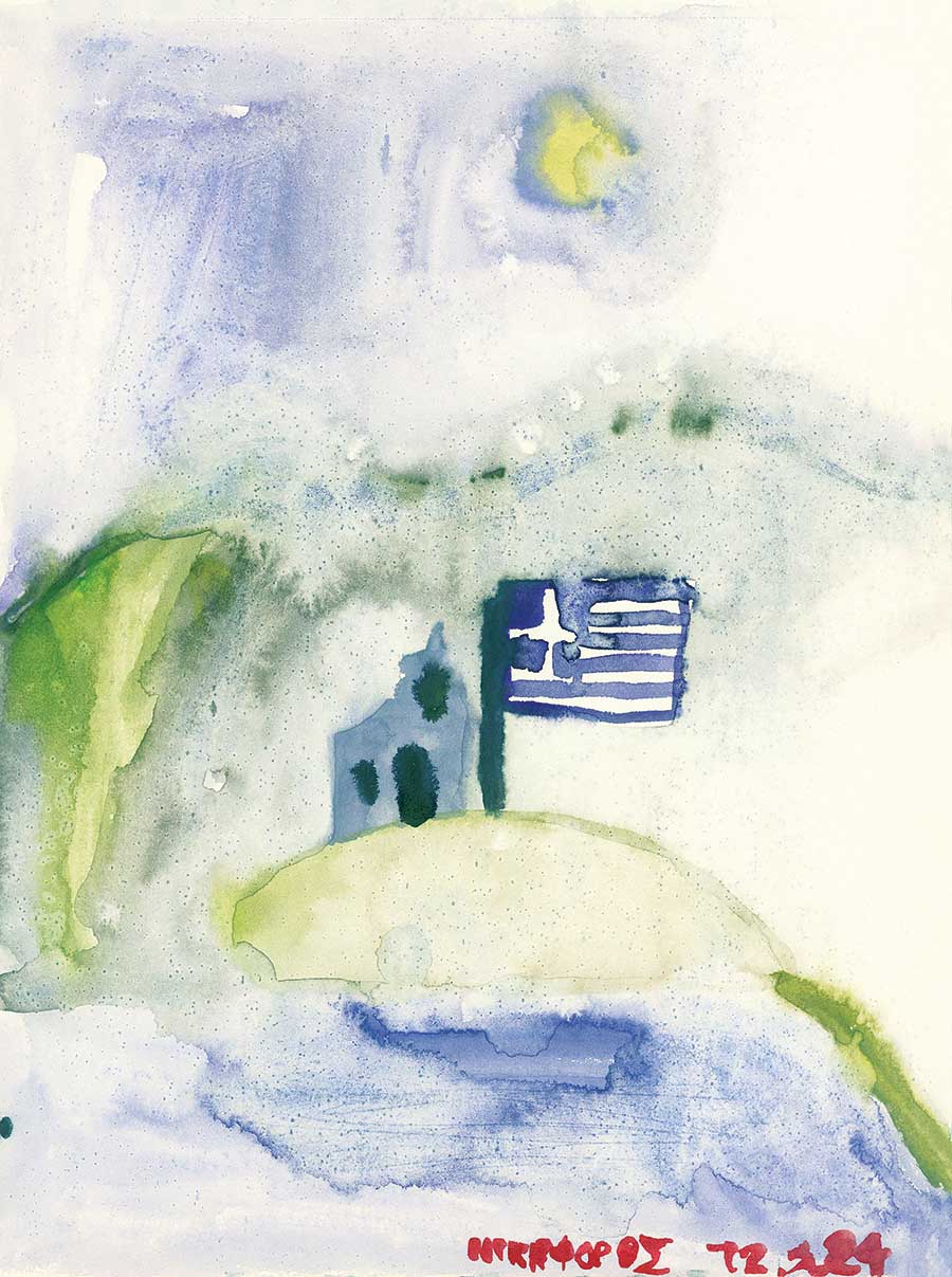 Καθώς η συνομιλία μας πλησιάζει προς το τέλος, η μητέρα του μου δείχνει τον πίνακα με θέμα το δυστύχημα στα Τέμπη. «Ζητήθηκε από τον Νικηφόρο να ζωγραφίσει τα Τέμπη ως παραγγελία έργου» σημειώνει η ίδια και καταλήγει: «Δεν είχαμε μιλήσει γ’ αυτό. Ολα όσα γνώριζε προέρχονταν από το σχολείο ή από τις ειδήσεις που άκουγε στο σπίτι από την τηλεόραση. Του είπα να φτιάξει ένα τρένο με 57 περιστέρια. Σε όλη τη διάρκεια του έργου έκλαιγε απαρηγόρητα, ενώ τα δάκρυα έπεφταν πάνω στον πίνακα. Τα περιστέρια – γλάροι στα έργα του είναι συνήθως ήρεμα με συναισθήματα. Στον συγκεκριμένο πίνακα είναι όλα τρομαγμένα, με έντονες κινήσεις κατευθύνονται ψηλά στον ουρανό. Οταν τελείωσε περίπου ύστερα από μία ή μιάμιση ώρα, ήταν εξαντλημένος και ήσυχος».
