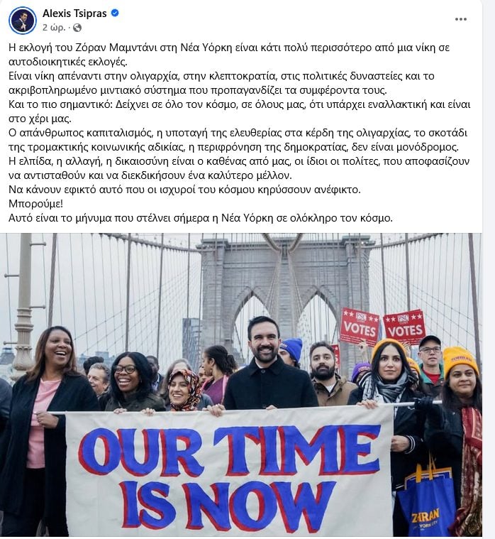 Τέλος, φυσικά για την νίκη του Ζοχράν Μαμντάνι χαίρεται και μία πτέρυγα των Μητσοτακικών, η νεοφιλελεύθερη διεθνής, που φυσικά πανηγυρίζει τον θρίαμβο ενός μουσουλμάνου μετανάστη σε εκλογική αναμέτρηση και τις woke ιδέες του. Τα λεφτόδεντρα φαίνονται πως δεν τους νοιάζουν ιδιαίτερα. Άλλωστε κανένας Μητσοτακικός δεν έχει κάτσει ποτέ να πληρώσει λογαριασμό.